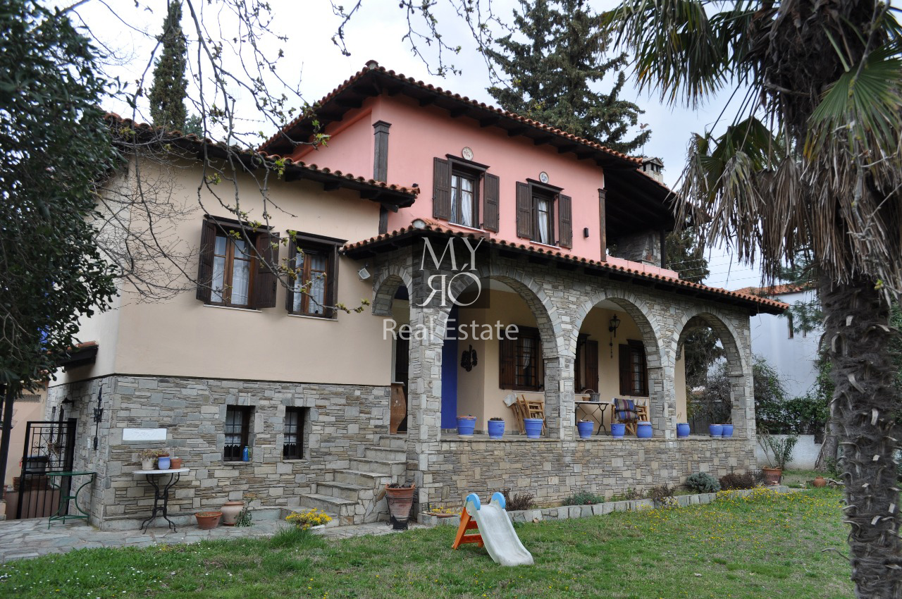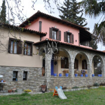 A 284 sq.m., 3 level house (with two more semi-levels) for sale, in a 900 sq.m. plot, in Agia Anastasia settlement, in Vasilika, Thessaloniki. The property has: 4 bedrooms, living room, kitchen, dining room, 2 bathrooms and WC. Furthermore it has: 80 sq.m. basement – playroom, storage spaces, autonomous oil heating system, A/C, fireplace, roof tile, wooden windows, fenced garden with trees and gardener’s storage room, stone cladding and floor and 3 entrances.