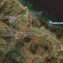 A 13,900 sq.m lot for sale, in Paliouri, Kassandra, Chalkidiki (near Miraggio hotel). First on the beach, 30 m. facade, 3 different properties. Building permits: 200 sq.m. (x3) plus the basement. Price: € 650,000.